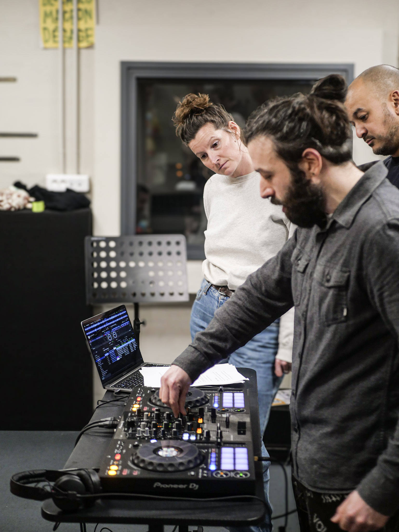 Les participant·es apprennent à comprendre le fonctionnement du matériel, à gérer le tempo (BPM) et à enchaîner deux morceaux proprement, dans des conditions proches de la pratique réelle.